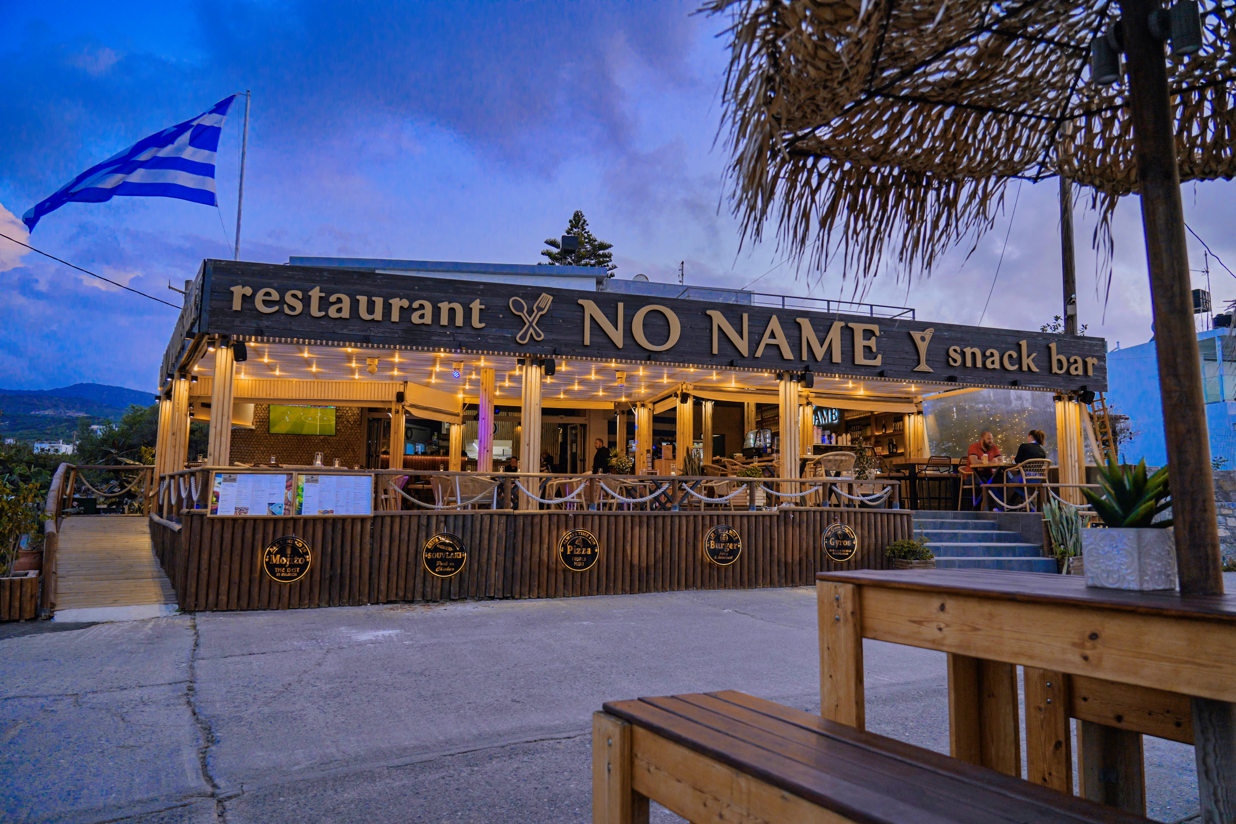 Set in Milatos Village on Crete’s north coast, No Name is a family-run spot where warm light, easy conversation, and sun-kissed flavors meet. Slow afternoons turn into golden evenings with fresh plates, chilled cocktails, and a view that keeps you lingering.